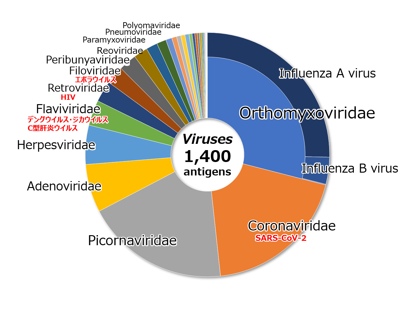 • ウイルス(約600株)、細菌(約1,200株)、真菌(約140株)、原虫(約60株)等の 抽出タンパク質画分(クルード)および組換えタンパク質を搭載